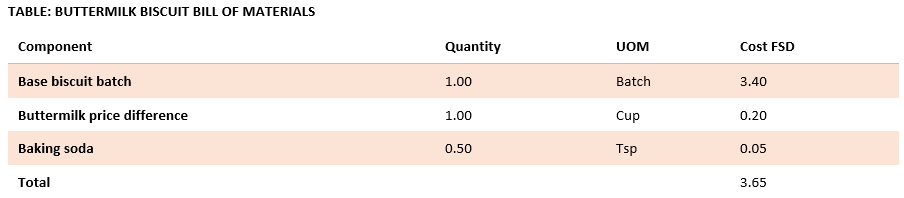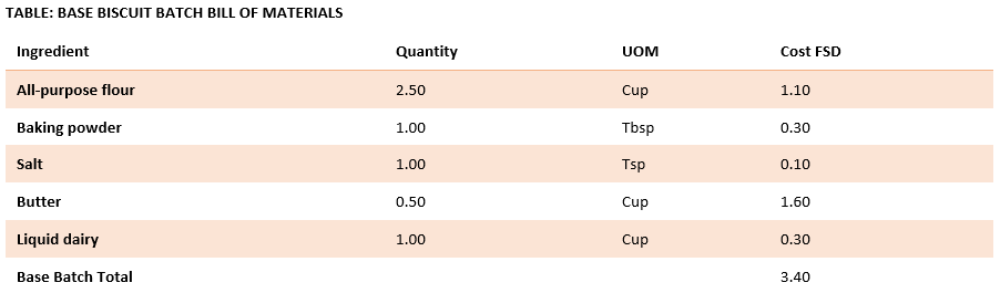 First, price changes for butter, flour, or dairy automatically affect all biscuit variants without requiring recipe changes.