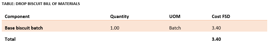 The table below lists each biscuit variant discussed, its base, and the additional or modified ingredients that create it. This is the table planners use when reviewing BOM impact and pricing changes.