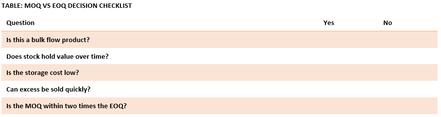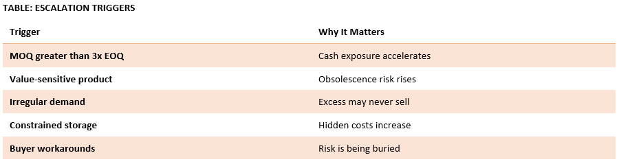 Before placing an order that exceeds EOQ, teams should pause and answer the following.