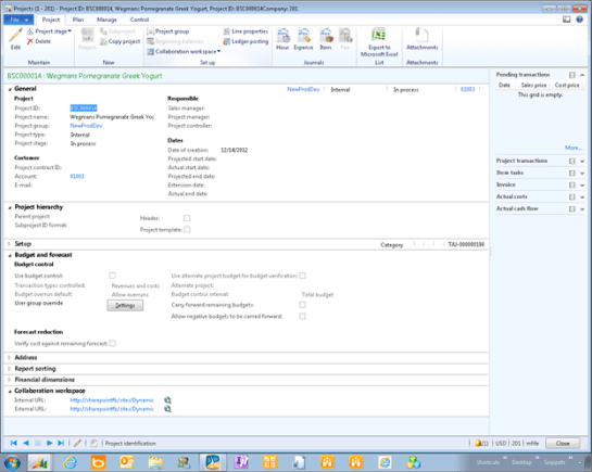 | From the project we are able to associate time, expenses, items, and other expenses against our project. If we wanted to define a WBS for the project as well, then that’s not a problem since that is standard in the project accounting module. |