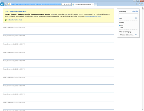 | If you add the document service name to the end of the URL, then you will be able to see that the data is being returned as a feed: