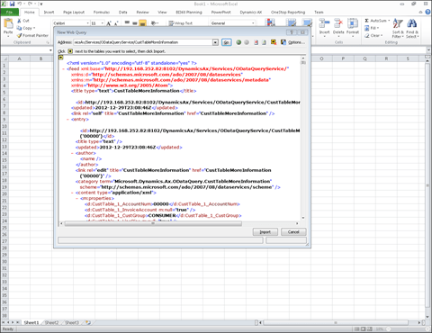 | Now we just need to replace the sample data with AX data. And the first step in order to do this is to read the web service data into the application: