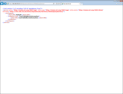 WinJS.xhr({ url: “http://192.168.252.82:8102/DynamicsAx/Services/ODataQueryService/CustTableMoreInformation” }).then(function (rss) { var items = rss.responseXML.querySelectorAll(“properties”);