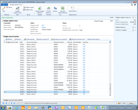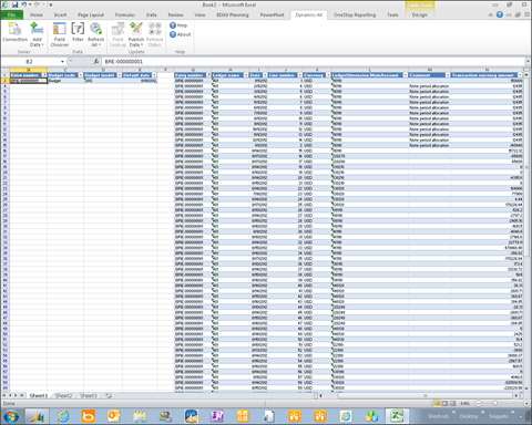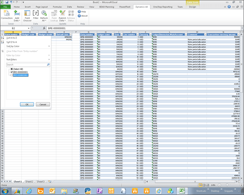 | In this example we will use the filter operation in Excel to just select one of the budgets that we have set up in the system. |