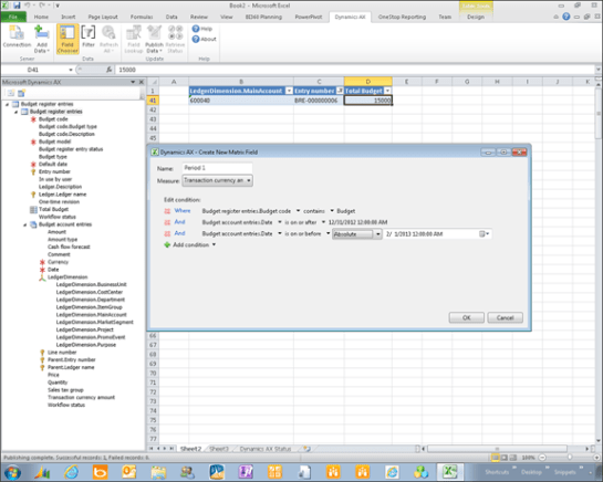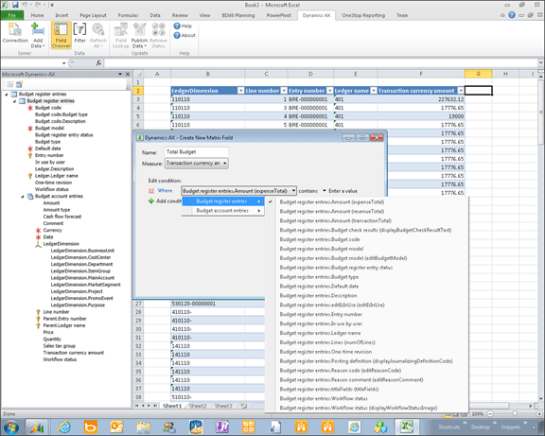 Retrieving and Publishing a Budget through Excel Using Matrix Fields