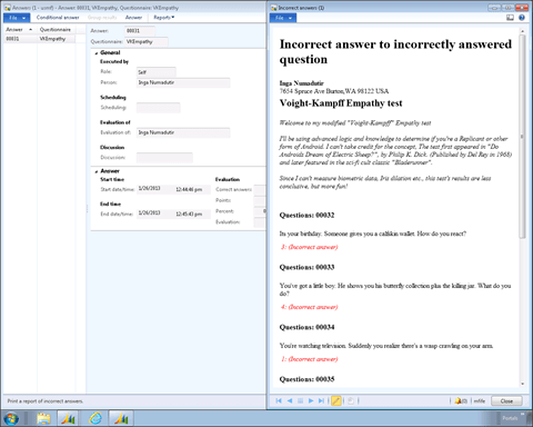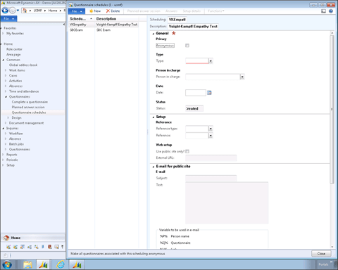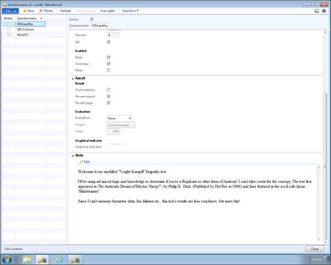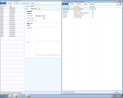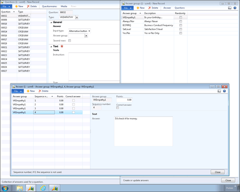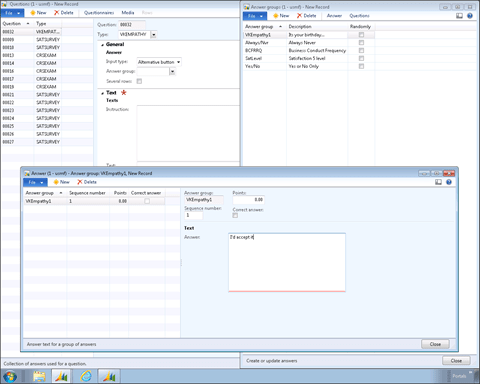 | Questionnaires are a great way to gather information, and Dynamics AX 2012 has a great feature that allows you to create your own questionnaire formats for employees, vendors, and customers that can either be filled out through the self service applications, or delivered by an agent such as a CSR in conjunction with call lists.In this example we will show one of the ways that questionnaires can be used, and create an employee questionnaire to weed out some troublesome individuals.