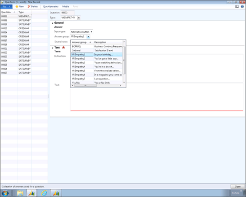 | This will enable the Answer Group field with the default answer types that have been defined. A lot of the time, you can re-use answer formats – i.e. the default 1-5 satisfaction range. |
