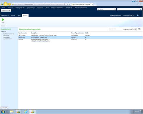 | That will show them all of the questionnaires that they have in their queue to answer. To complete the questionnaire, all they need to do is click the Start button in the ribbon. |