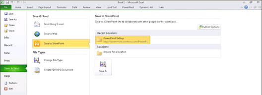 - From the File menu, select the Save & Send menu item and Save to SharePoint.