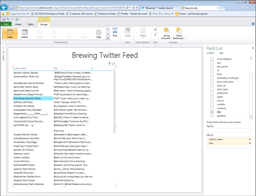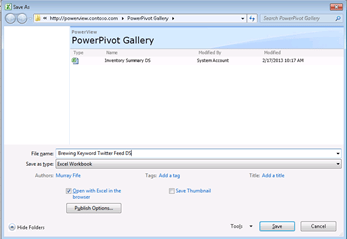 In this short example we will show you how to convert a Twitter search into an RSS feed, use it within PowerPivot to create a data source, and then create a Power View dashboard from the data.