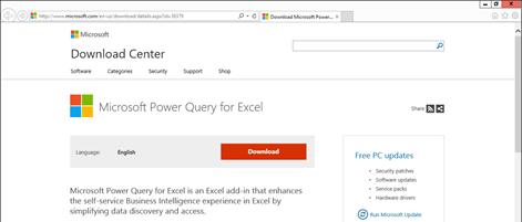 Power Query is easy to find. I just did a Bing search and found it right away on the Microsoft Download Center: