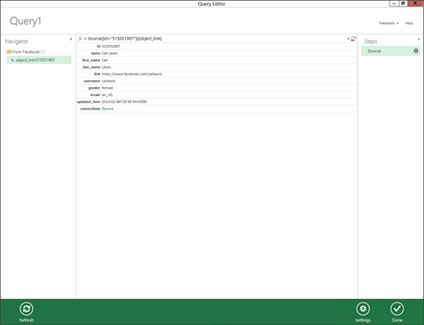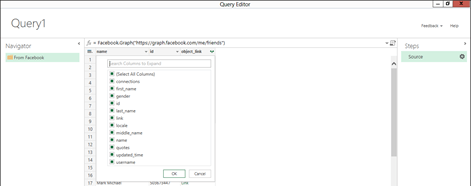 In this example I will show how you can use Power Query to view you Facebook Feed activity.