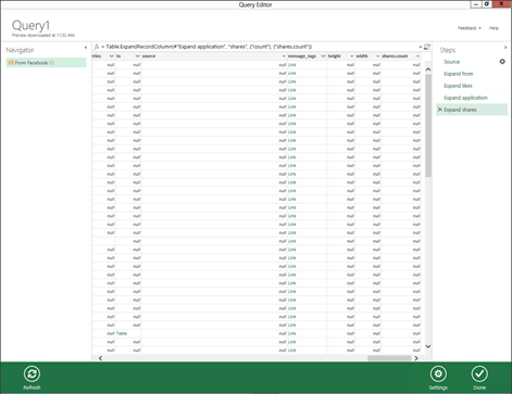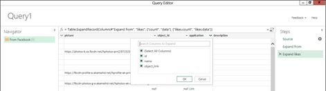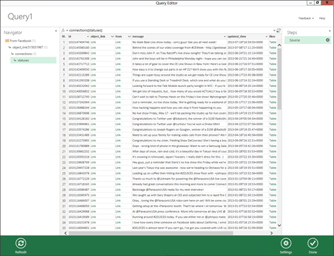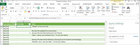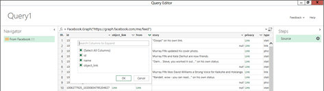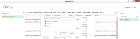 To analyze your Facebook feeds with Power Query, follow these steps: