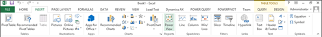 1. Select the query data within Excel and then click on the Power View button within the Reports group of the Insert ribbon bar.