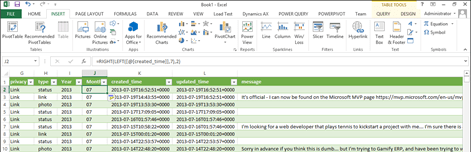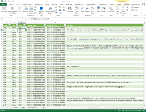 Analyzing your friends on Facebook is nice, but something that is even more interesting is to analyze the Facebook Feeds. Power Query allows you to download your complete Facebook feed history so that you can take a walk down memory lane.