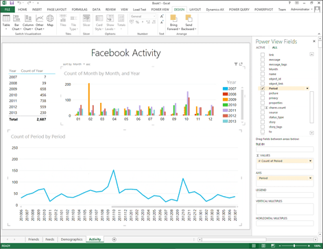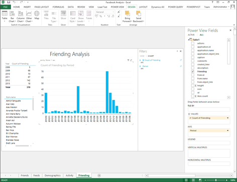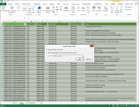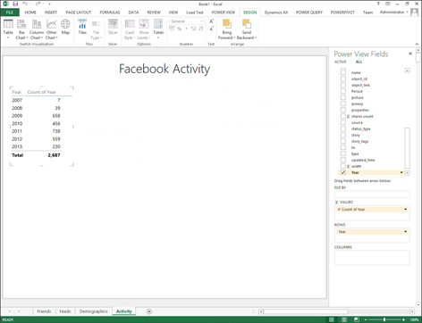 Once you have queried Facebook using Power Query, you will probably want to visualize it. The best tool for that is Power View.