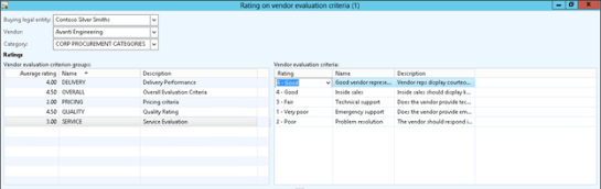 Once the evaluation criteria have been configured, you can start recording the vendor ratings.
