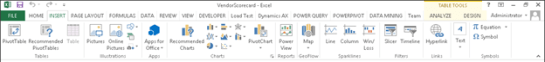 14. Now we will start creating the Vendor Scorecard within Power View. To do this, select the Insert ribbon bar within Excel, and click on the Power View button within the Reports group.
