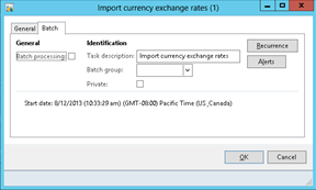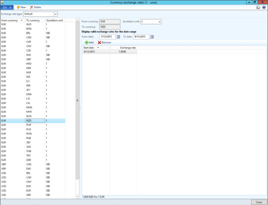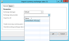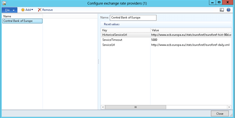 In this example we showed how you can easily configure Dynamics AX 2012 to import your currency exchange rates from the default Exchange Rate Providers.