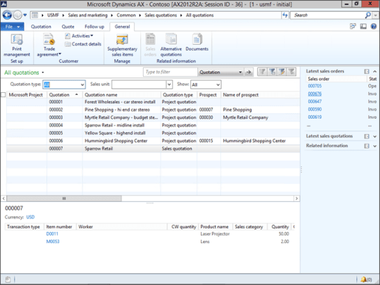 To show you what we are talking about, just open up the Sales Quotations form and switch to the General ribbon bar. If you look in the Related Information group you will see the Documents button.