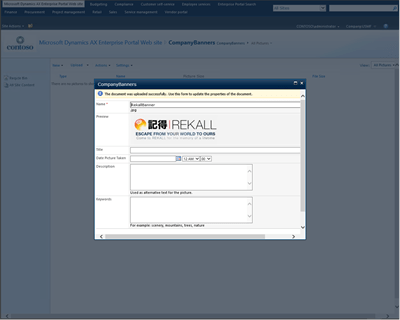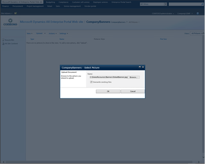 Once you have your banner created you need to put it somewhere that the Role Center is able to find it, and SharePoint will only allow you to reference a URL, so using your local filing system will not cut it. So to get around this problem we will just want to create a new Picture Library within the Enterprise Portal that we can store our banners away in. Then we can reference them through a URL and also we have a centralized location for any other banners that we want to create.