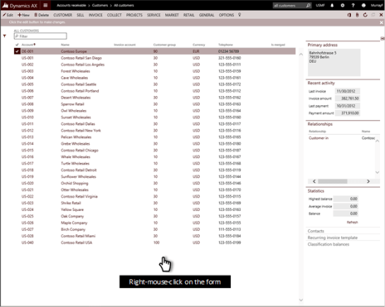 I have scoured all of the resources that I have to compile the most useful tips and tricks for the New Dynamics AX and that will be useful to everyone, regardless of if you are a novice to Dynamics AX just trying to get around in the application, or have worked with the previous versions of the system, and are just want to learn the nuances of the new user interface.