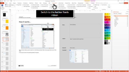 Merging pictures and tips within walkthrough guides using Author Tools