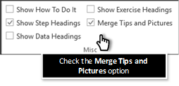 Make sure that the Merge Tips and Pictures check box is checked. If you have this unchecked, then the document that you create will just have the Picture element and not the tip – which is useful if you are wanting to create clean documents and have the tips as captions.