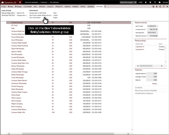 I have scoured all of the resources that I have to compile the most useful tips and tricks for the New Dynamics AX and that will be useful to everyone, regardless of if you are a novice to Dynamics AX just trying to get around in the application, or have worked with the previous versions of the system, and are just want to learn the nuances of the new user interface.
