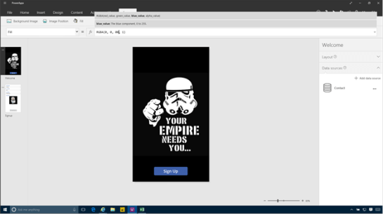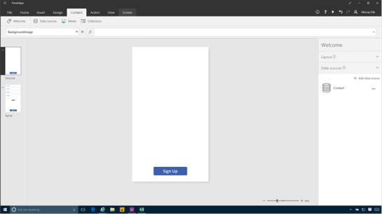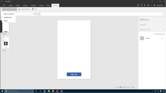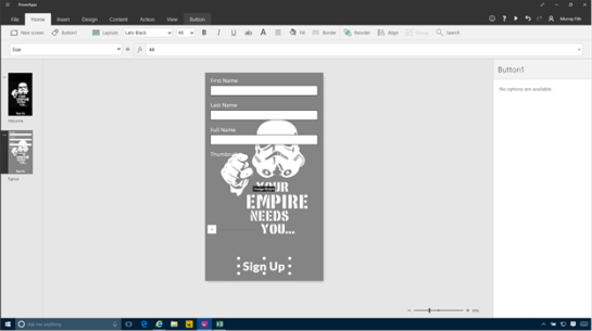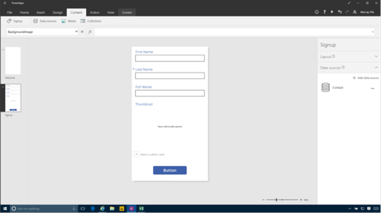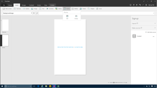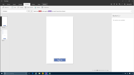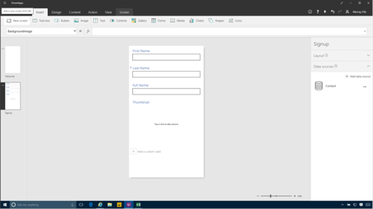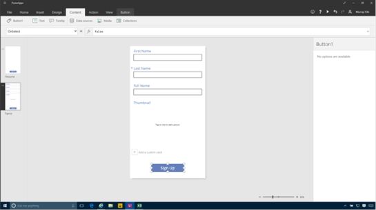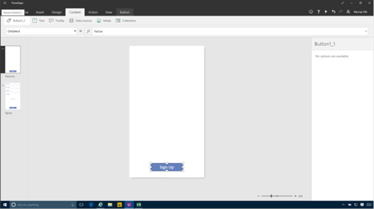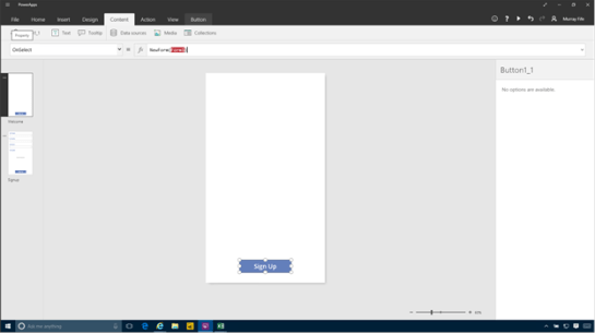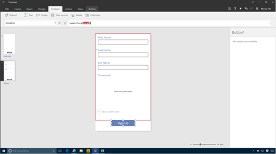 Now we will want to create an action that allows the users to save their signup information after they have filled out the form. To do this we will swap to the Signup form, select the Signup button and then select the OnSelect action.