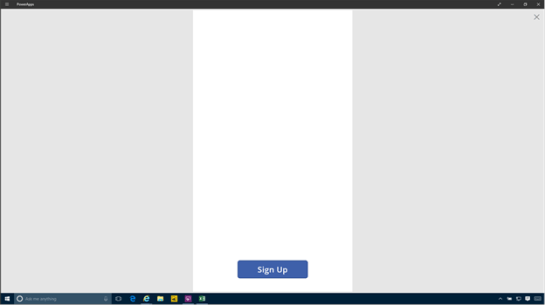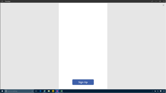 This will open up the form as if it were a real app, and we will be on the Welcome screen with the sign up button. All we need to do is click on it.