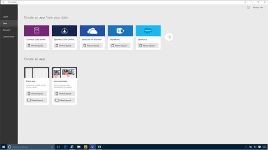 Now we will start creating our PowerApp mobile application. For this example we will use the PowerApps desktop version which we downloaded from the Microsoft Store.