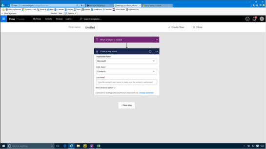Additionally we added another step that we want to perform when the contact is created, and that is to create a Lead. We went through the same process as we did with the Contact, except we just select the Lead entity type from CRM.
