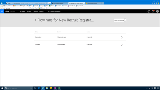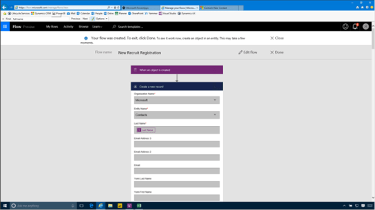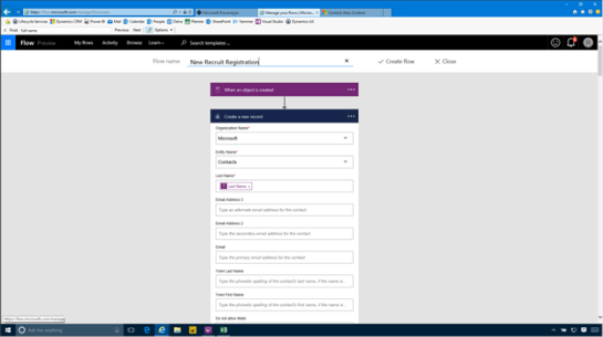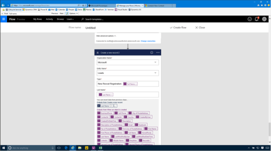 Now that we have our recruitment form all set up and are capturing the information within the Common Data Model Entity we will want to start doing things with it. To do this we will take advantage of Flow which will watch for information changing within the entities and then allow us to update other systems including Dynamics.