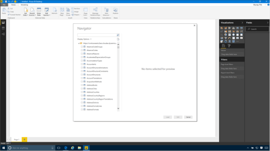 This will open up a list of all the entities that are available. In this case, these are all of the entities that are created when the Common Data Model database was created for us.