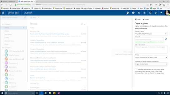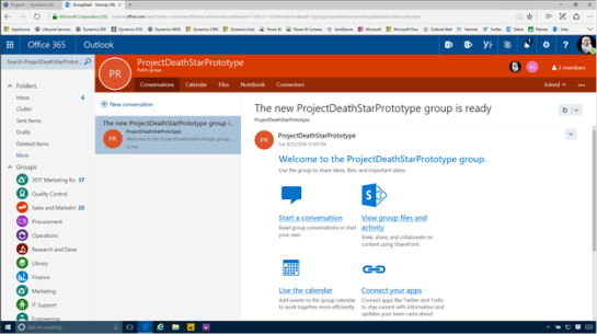 Although Dynamics does not automatically create the group for us, that doesn’t mean that we can’t use this for our workspace though, all we need to do is link the group to our Project. This is a small tradeoff for what this give us in return.