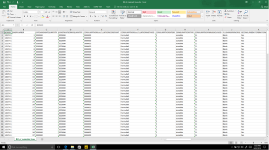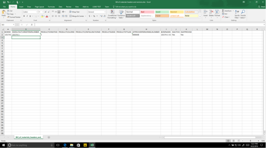 All we have to do with this one is update the BOMID, the MANUFACUREDITEMNUMBER and the BOMNAME columns and save and close the file.