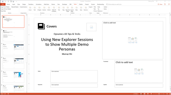 Murray is also the curator of the Dynamics AX Companions (www.dynamicsaxcompanions.com) site which he built from the ground up as a resource for all of the Dynamics AX community where you can find walkthroughs and blueprints that he created since first being introduced to the Dynamics AX product.