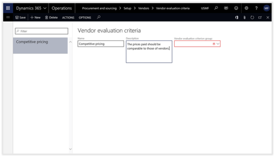 Now we can continue and add a few more Vendor Evaluation Criteria records.
