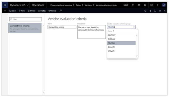 For example, here we set the Vendor evaluation criteria group to “PRICING“.