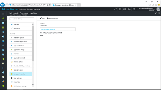 This will take you to an area where you can manage all of the different options for Azure Active Directory. The option that we are interested in looking at here is the Company branding options, so click on the Company branding link in the left hand menu.