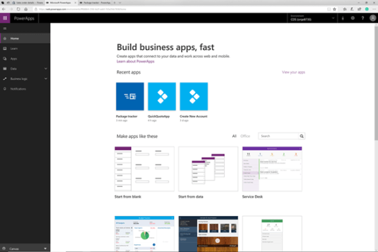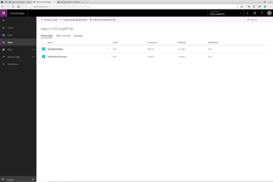 Start off by opening up the PowerApps site and then click on the Apps link on the left hand side menu.