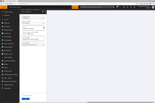 If you are feeling richer then you could select a Premium database, but for this example it’s a little bit too expensive.