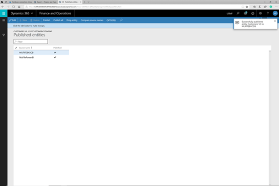 The next step is to allow the data entities that we want to export to the BYODB to be published to the new BYODB entity store.