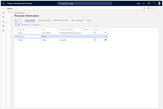 Finally we will want to mark the Facebook contact details that it is the Primary handle for the employee.