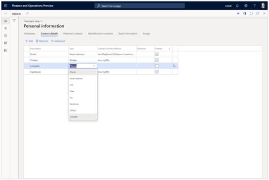 Let’s add one last contact record for the employee and add a LinkedIn handle to the employee record.