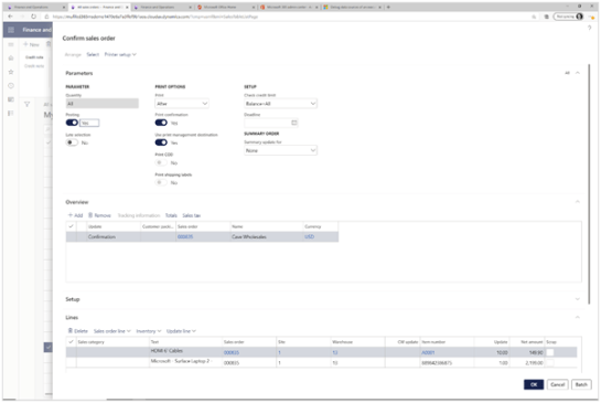 When the Confirm sales order dialog box is displayed, we will want to print the confirmation using the print management.