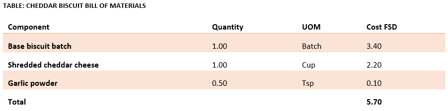 First, price changes for butter, flour, or dairy automatically affect all biscuit variants without requiring recipe changes.