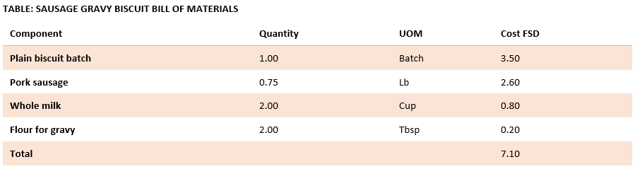 Three tiers appear immediately. Plain, drop, and buttermilk biscuits sit in the low-cost tier and are suitable for volume contracts and daily service. Sweet potato biscuits are in the middle tier, and any added preparation or ingredients must be matched to seasonal pricing. Cheddar and sausage gravy biscuits sit firmly in the high-cost tier and rely on premium positioning to remain profitable.