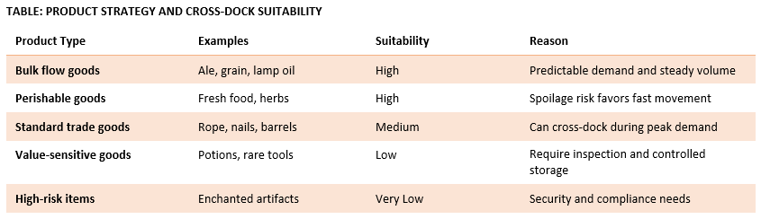 Not every product belongs on a cross-dock. The Waterdeep Trading Company uses product strategy to decide what moves fast and what rests.